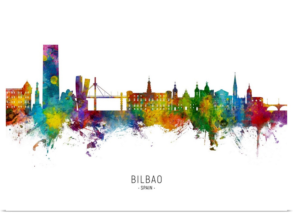 <p>Watercolor art print of the skyline of Bilbao, Spain</p>