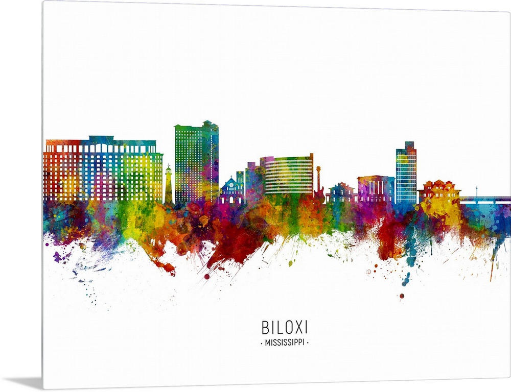 <p>Watercolor art print of the skyline of Biloxi, Mississippi, United States</p>