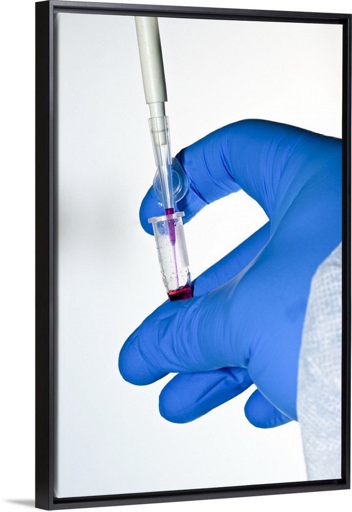 <p>Biochemical research. Close-up of a pipette being used to fill a sample well.</p>