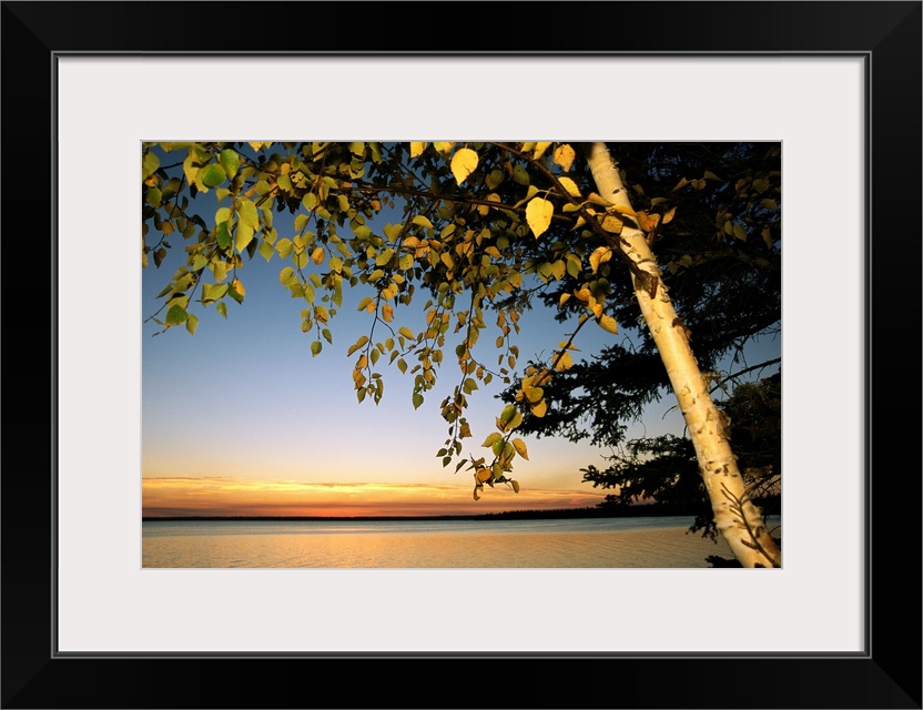 <p>Birch tree leaves highlighted at sunset on Clear Lake.</p>