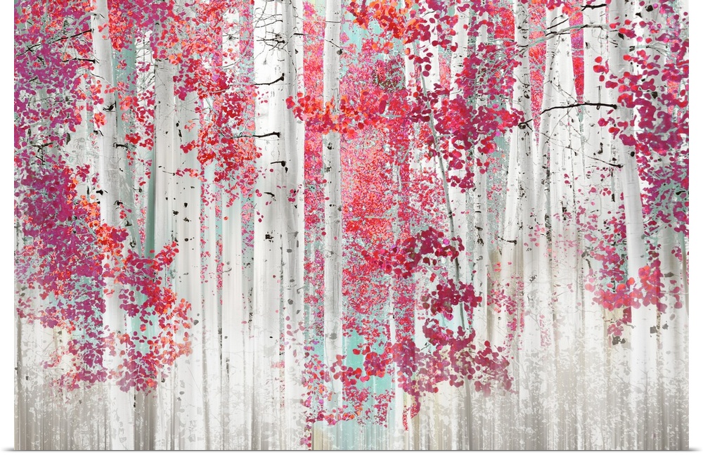 Abstract Art Contemporary Art Alex Hanson Trees Birch Forest Painting Pink Wall Art