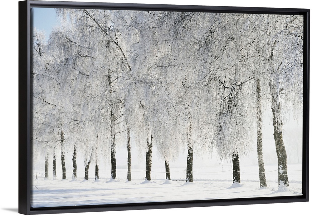<p>Birch trees with hoarfrost, near Villingen-Schwenningen, Black Forest-Baar (Schwarzwald-Baar) district, Baden-Wurttemberg, Germany, Europe</p>