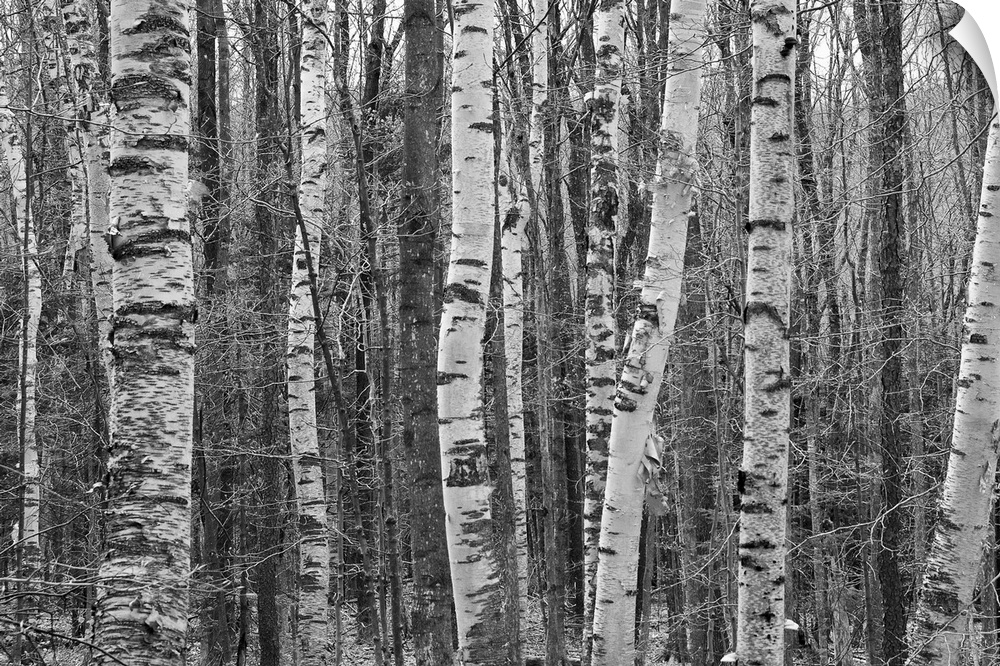 <p>Monochromatic rows of birch trees close together on Savoy Mountain in Massachusetts.</p>