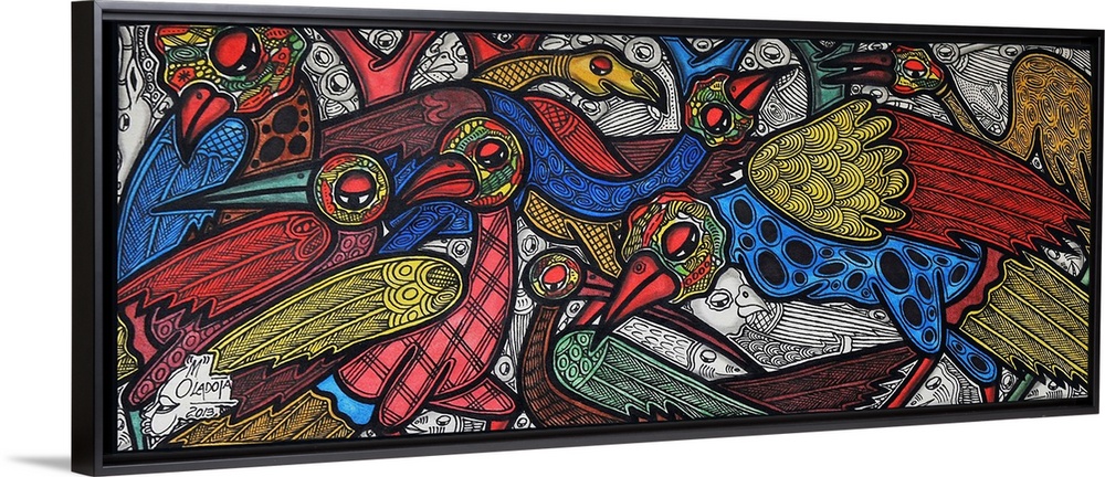 <p>Muktair Oladoja's artwork showcases both wild animals and scenes of daily life, with details drawn from traditional Nigerian patterns.</p>