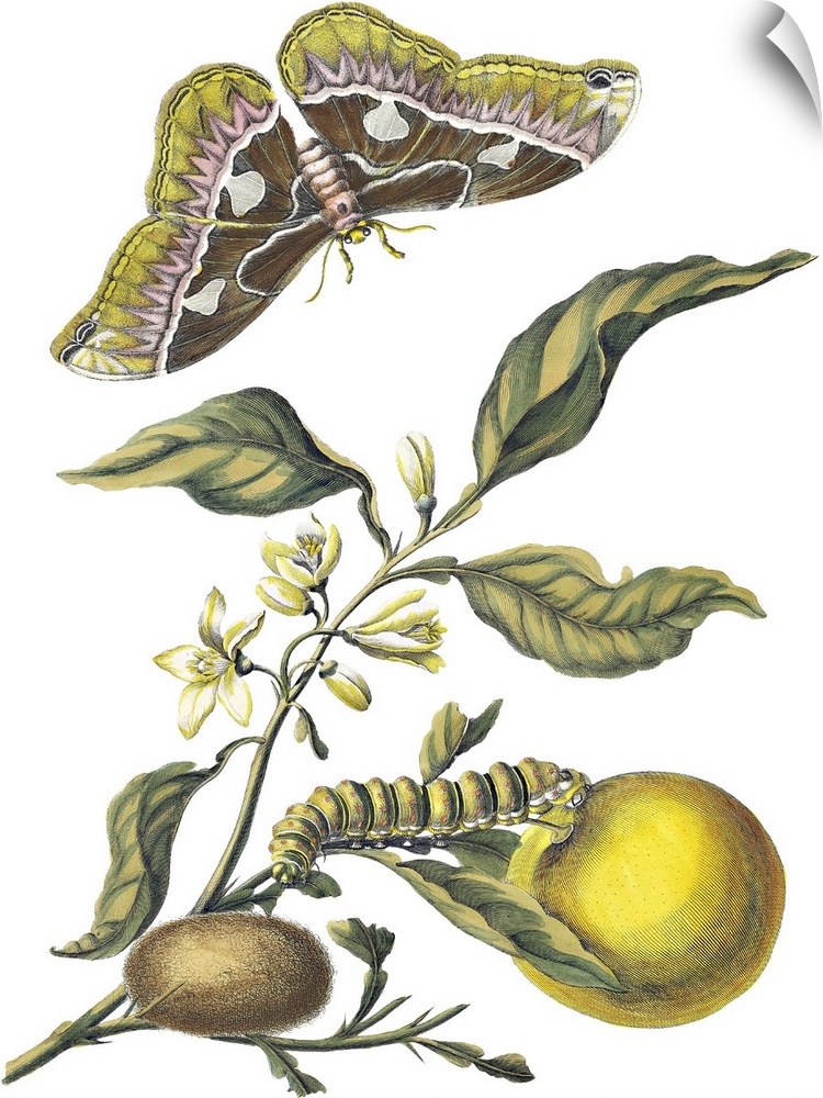 <p>Illustration of insects eating fruit on a vine.</p>