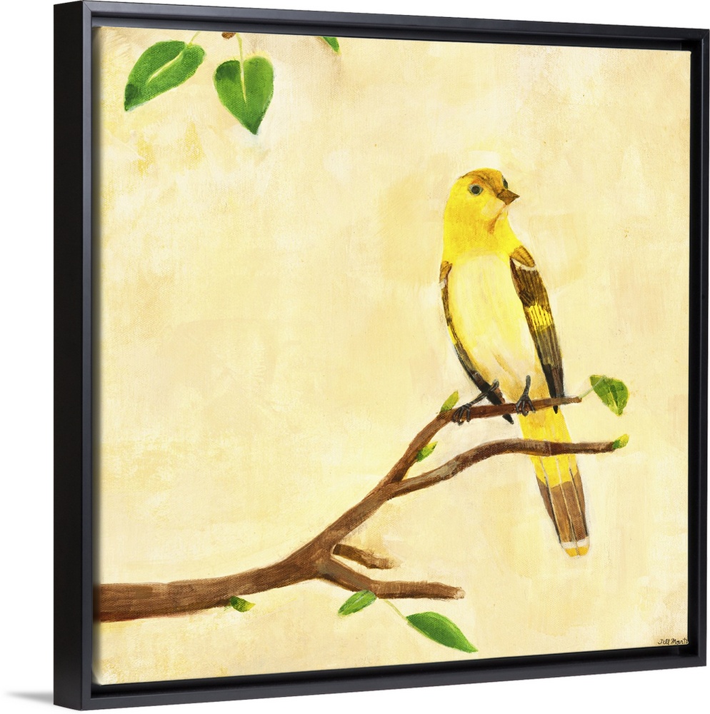 <p>Contemporary artwork of a yellow garden bird perched on a tree branch.</p>