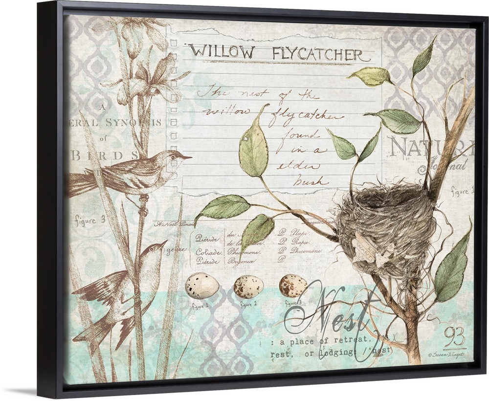 <p>Botanical study of birdlife adds elegant, nature-inspired touch to any room.</p>