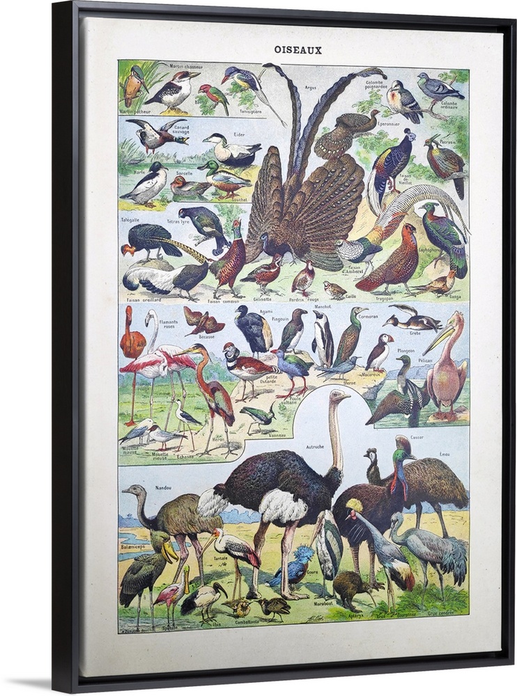 <p>Old illustration about birds by Adolphe Philippe Millot printed in the french dictionary "Dictionnaire Complet et Illustrate" by the editor Larousse in 1889.</p>