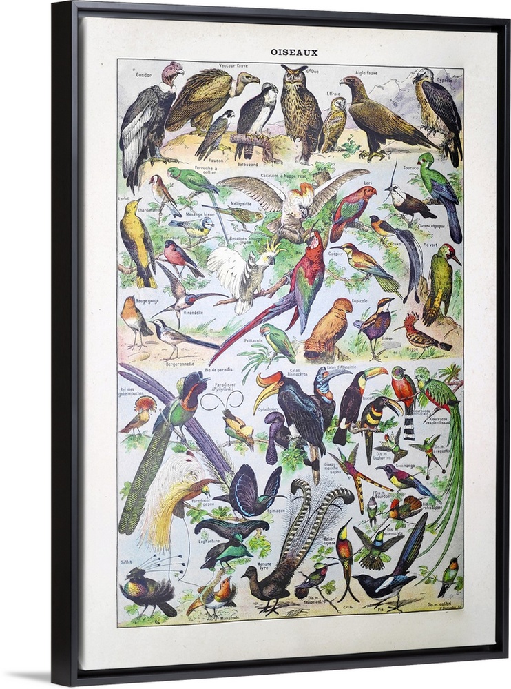 <p>Old illustration about birds by Adolphe Philippe Millot printed in the french dictionary "Dictionnaire Complet et Illustrate" by the editor Larousse in 1889.</p>