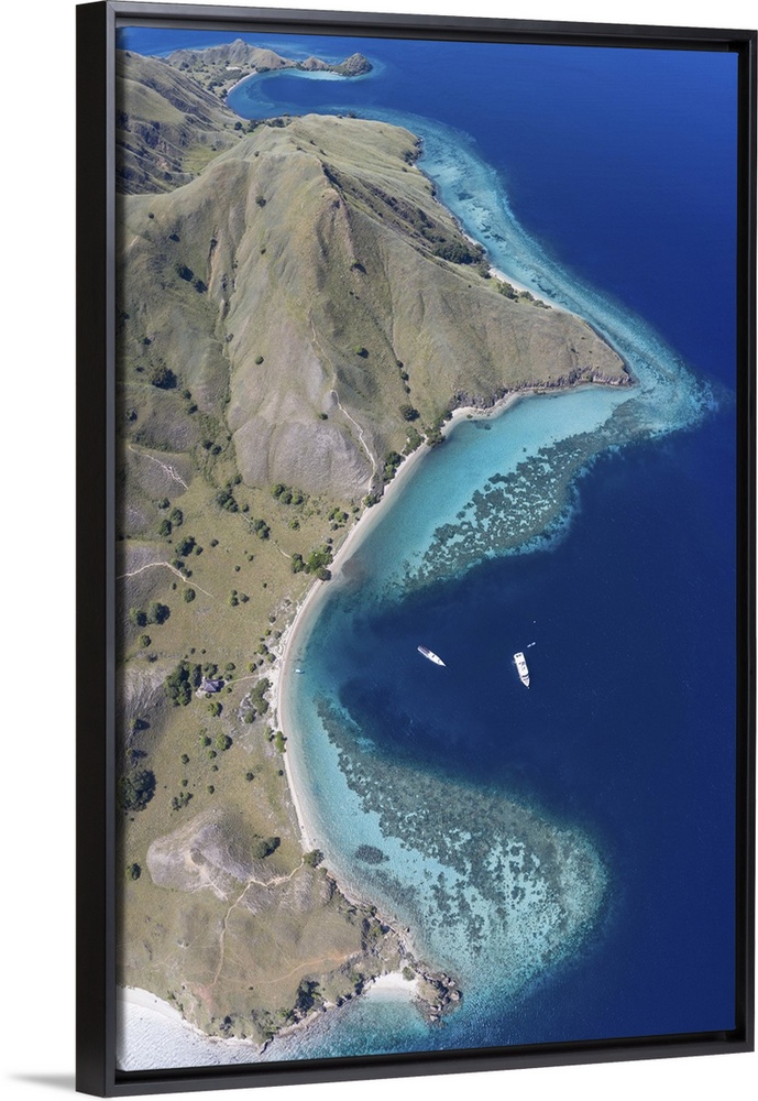 <p>Bird's eye view of a healthy fringing reef on the edge of Gili Darat island, Indonesia.</p>