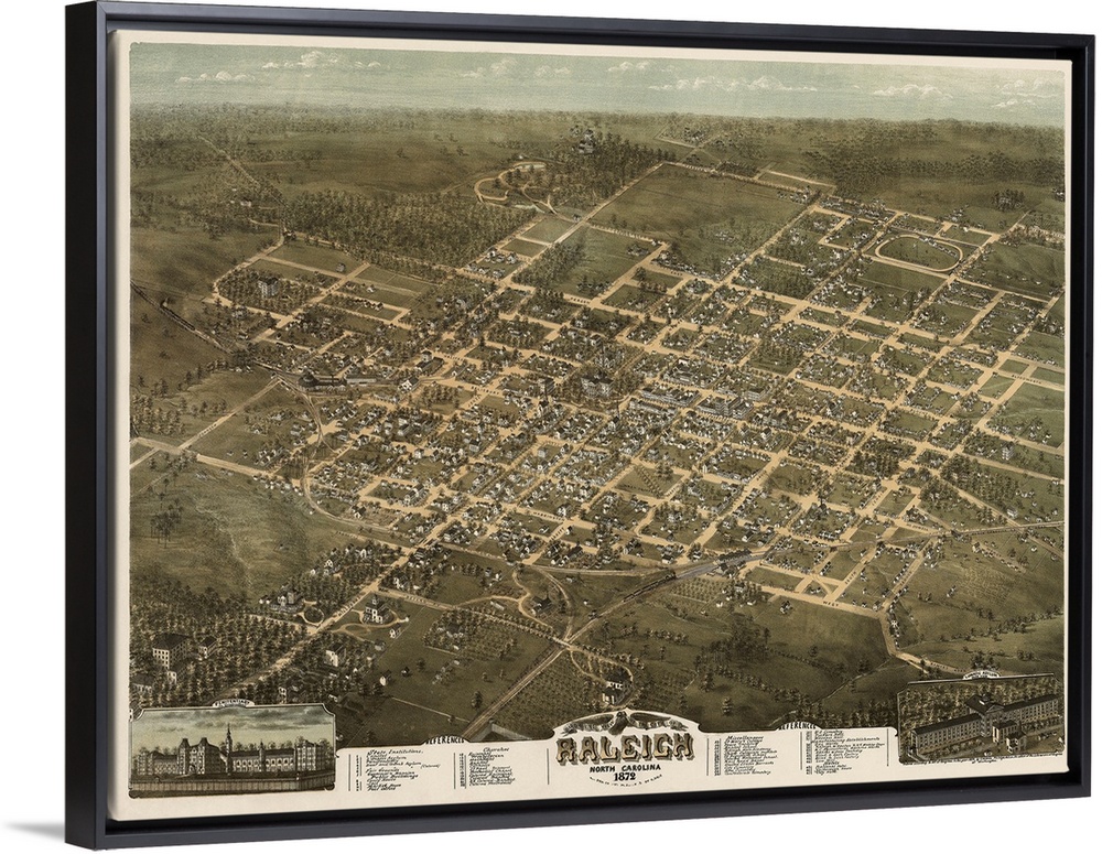 Art Commercial Decor Drawing US History Maps Antique Maps Maps by City North Carolina Raleigh