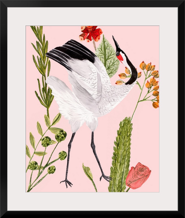 Art Decorative Art Florals Modern Chinoiserie Painting Pink Wall Art Melissa Wang Wildlife Bird Crane