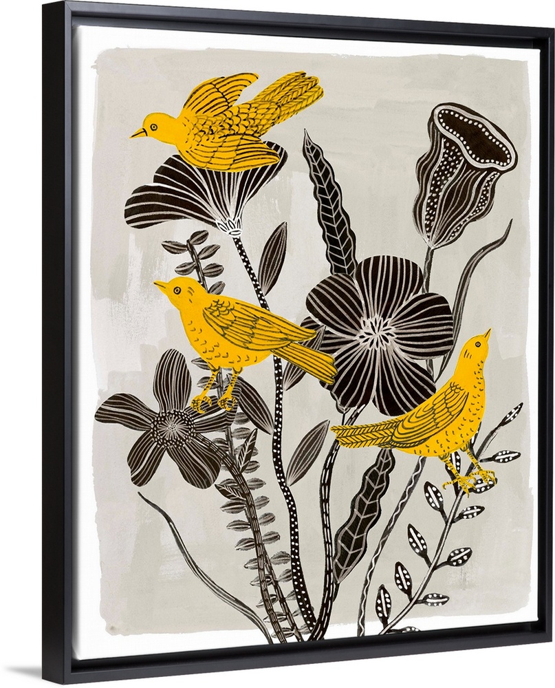 Art Decorative Art Florals Painting Melissa Wang Wildlife Bird Garden Birds Yellow Wall Art Mustard Yellow