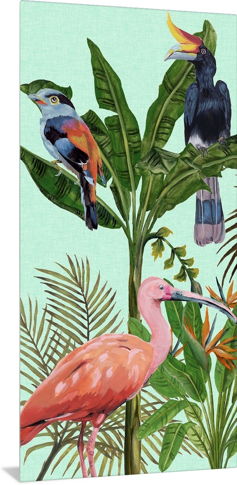 Art College Dorm Décor Tropical Oasis Sophisticated Jungle Decorative Art Florals Tropical Flowers Green Wall Art Painting Melissa Wang Wildlife Bird Flamingo Tropical Birds