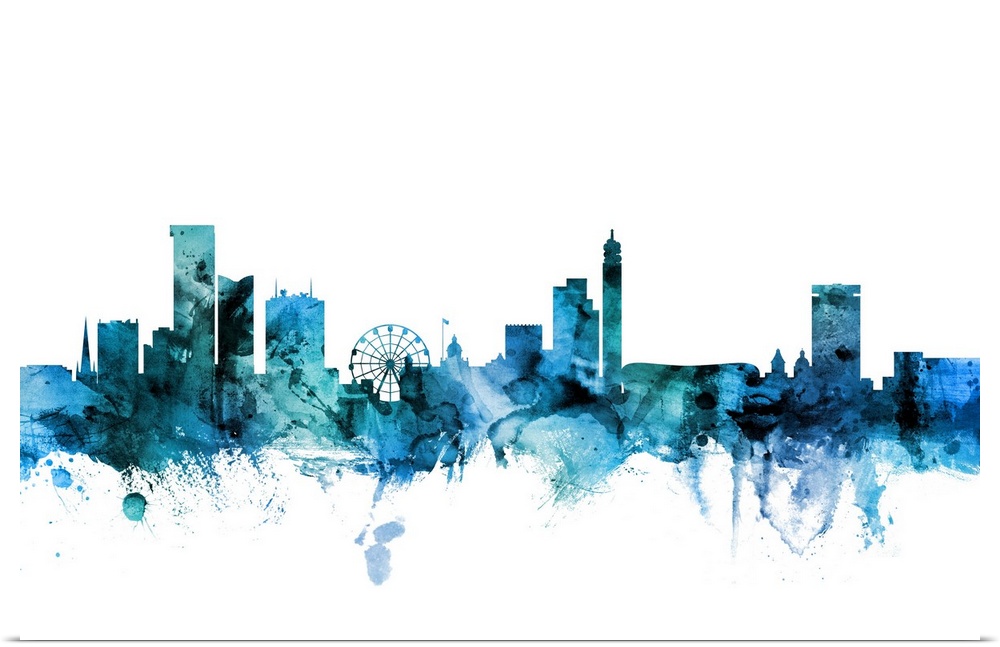 <p>Watercolor art print of the skyline of Birmingham, England, United Kingdom.</p>