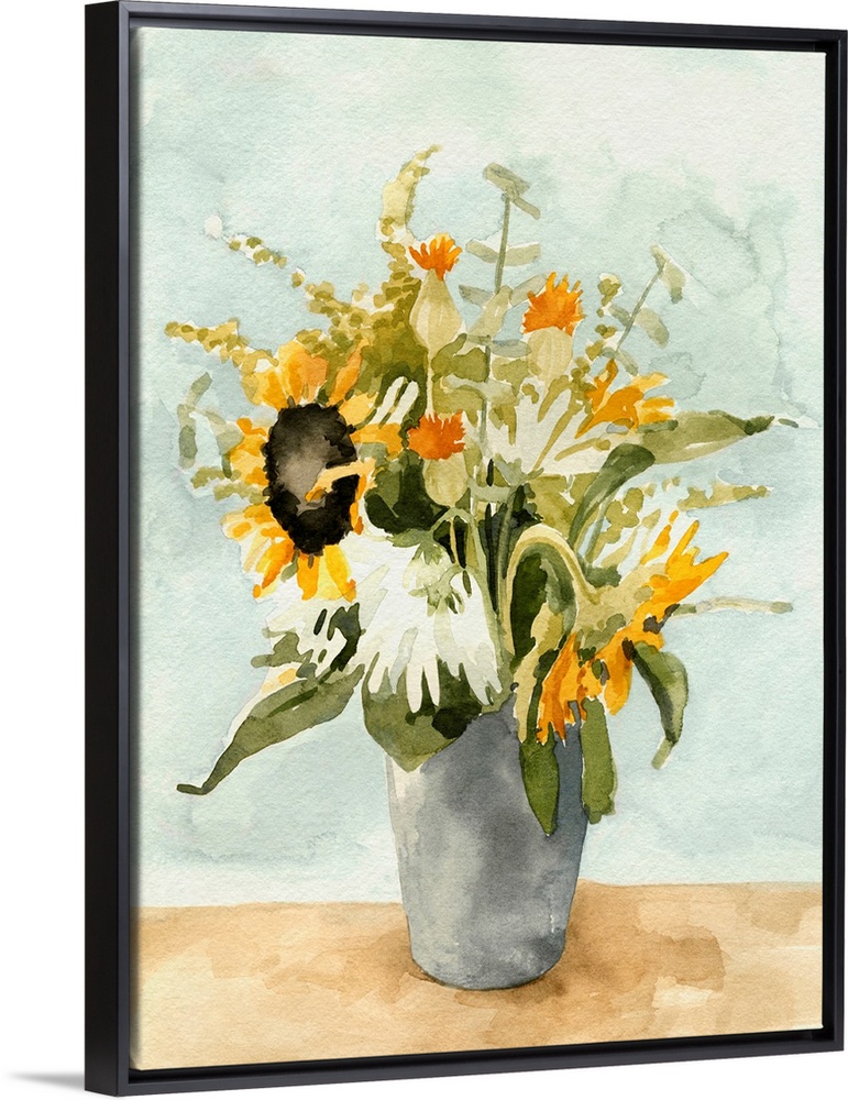 Art Farmhouse Emma Caroline Contemporary Art Florals Sunflower Orange Wall Art Painting Watercolor