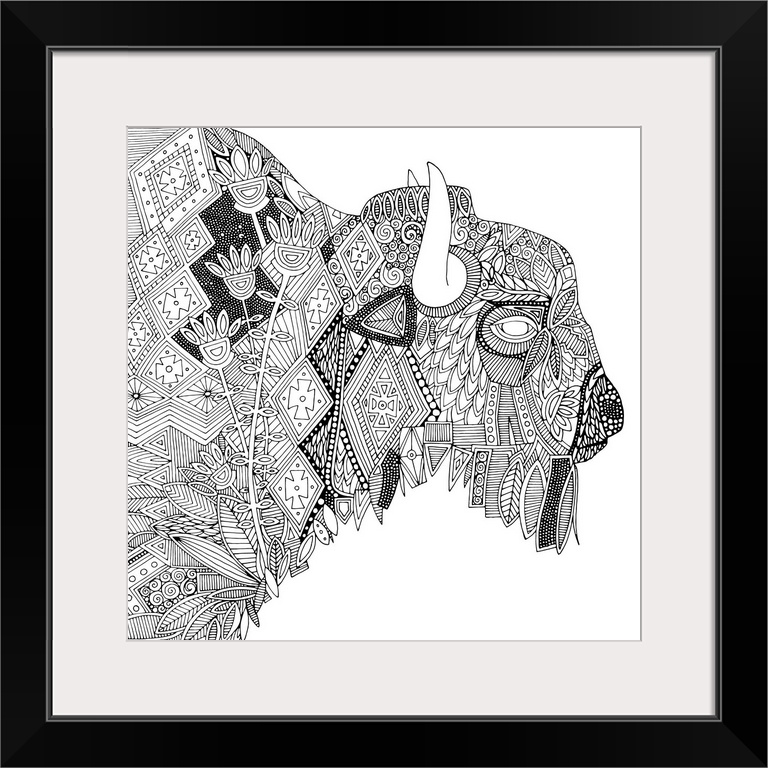 <p>Illustration of a buffalo with geometric patterns.</p>