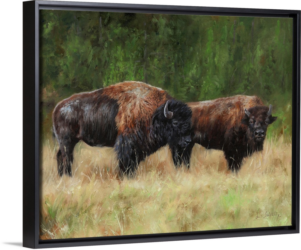 Contemporary Art Painting David Stribbling Wildlife Bison and Buffalo
