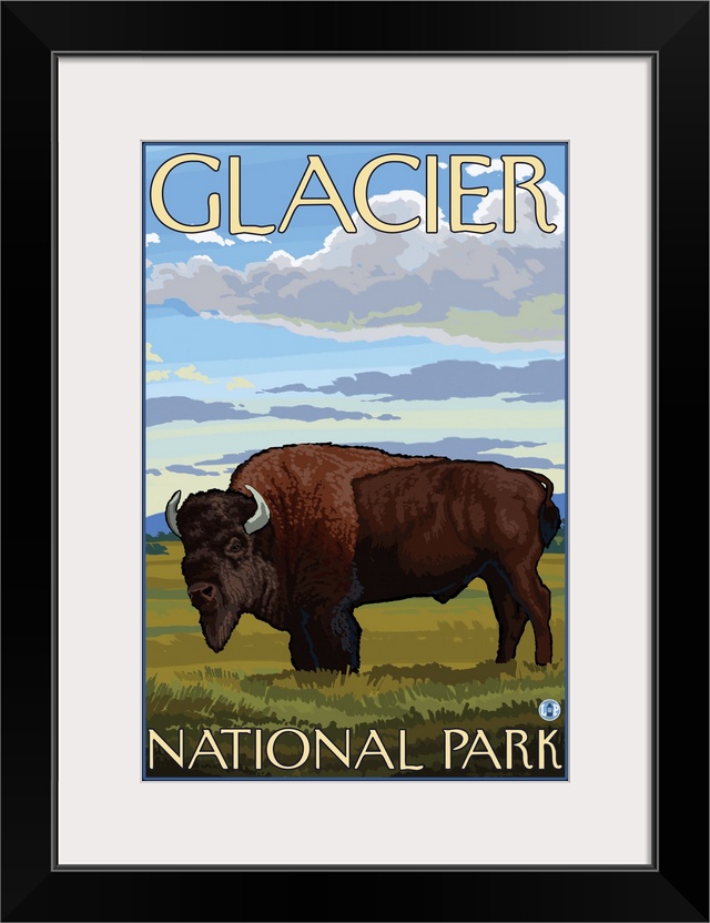 Art Lantern Press Montana Glacier National Park Travel Posters Retro Travel Posters Bison and Buffalo