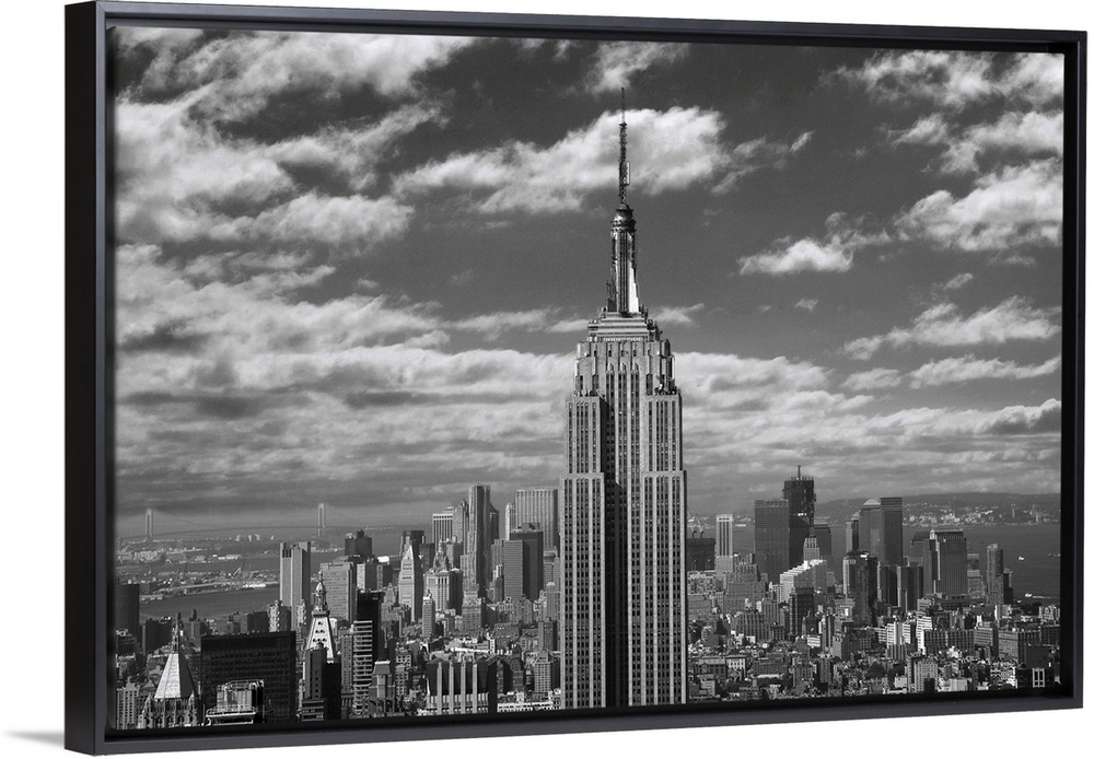 <p>Black and white landscape photograph taken of the Empire State building with the skyline seen in the background.</p>