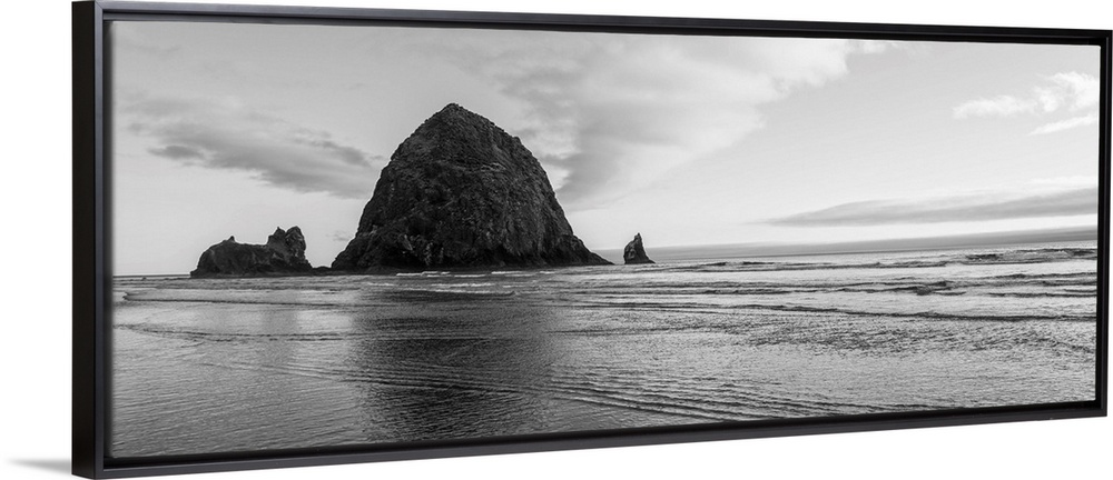 Black and White Haystack Rock, Cannon Beach, Oregon - Panoramic