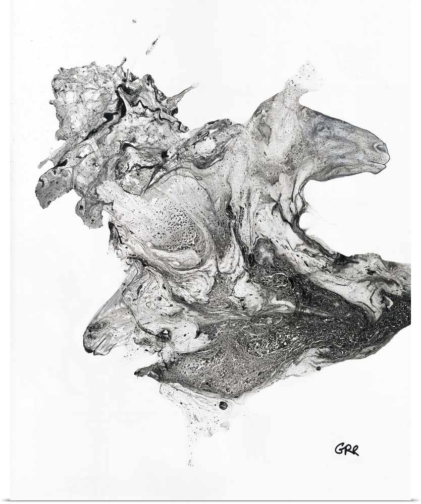 <p>Black and white illustration of horse heads emerging from an abstract.</p>