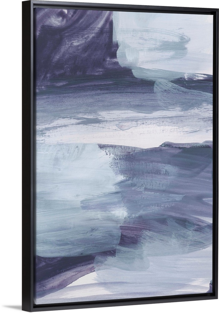 <p>Energetic brush strokes of white and purple create an abstract storm in this contemporary artwork.</p>
