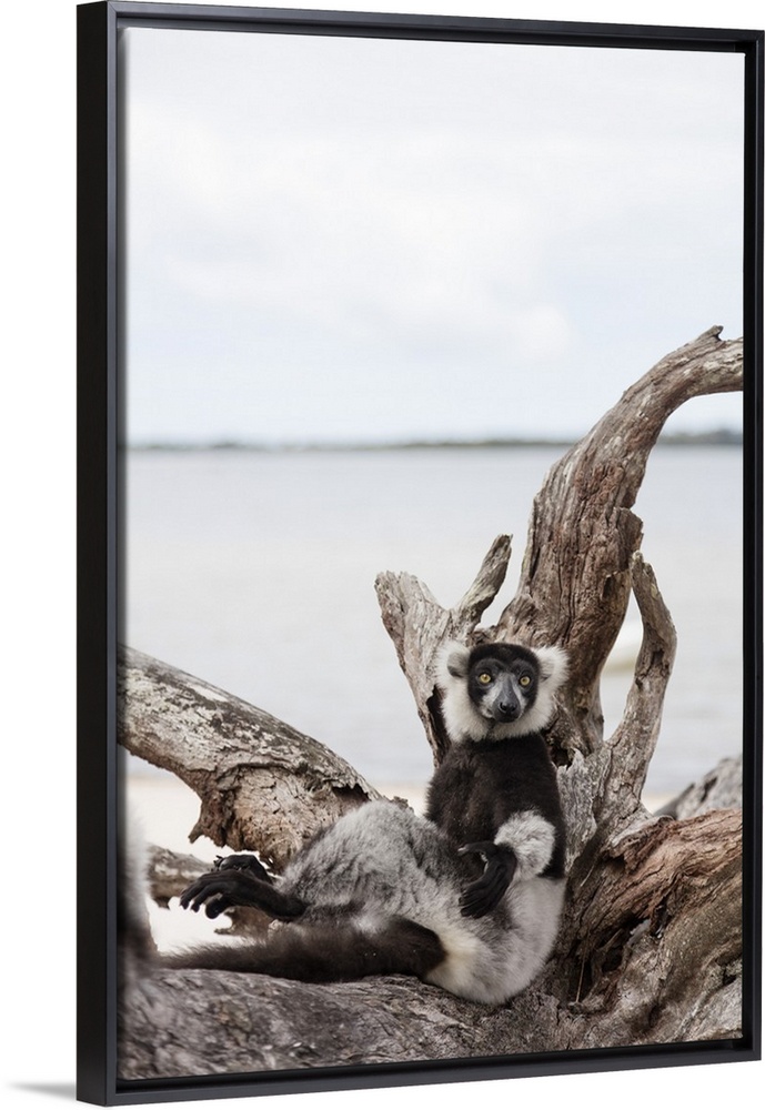<p>Black-and-white ruffed lemur (Varecia variegata), Lake Ampitabe, Pangalanes Lakes, Tamatave, Madagascar, Africa</p>