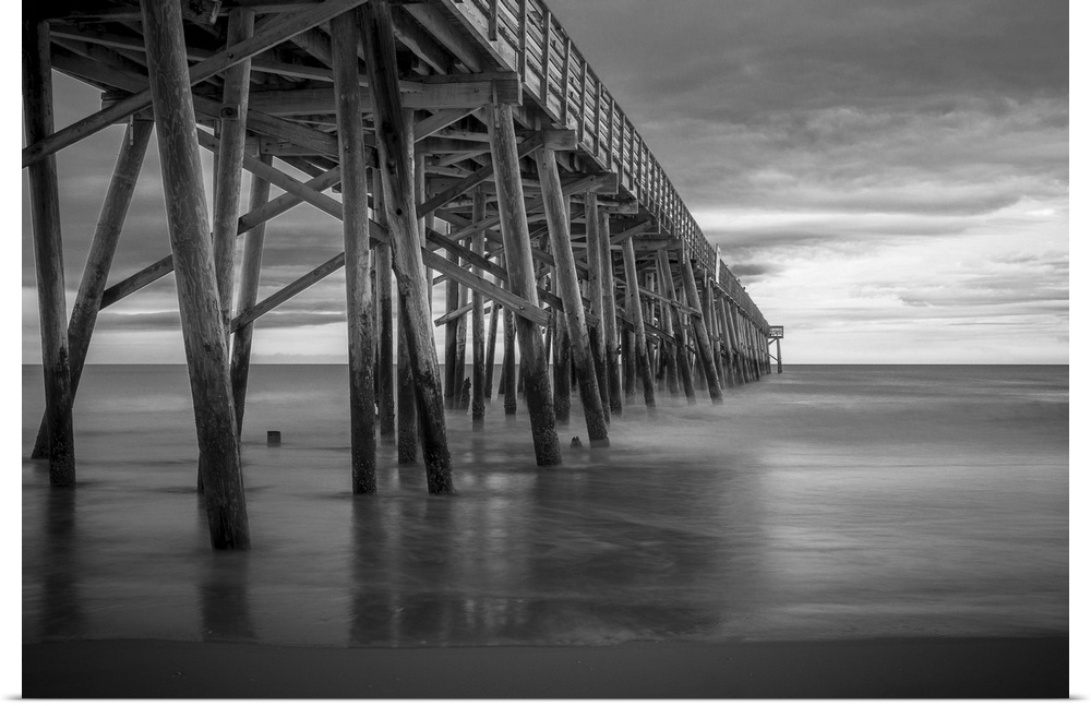 <p>A black and white photograph of a long pier jetting out over the ocean.</p>