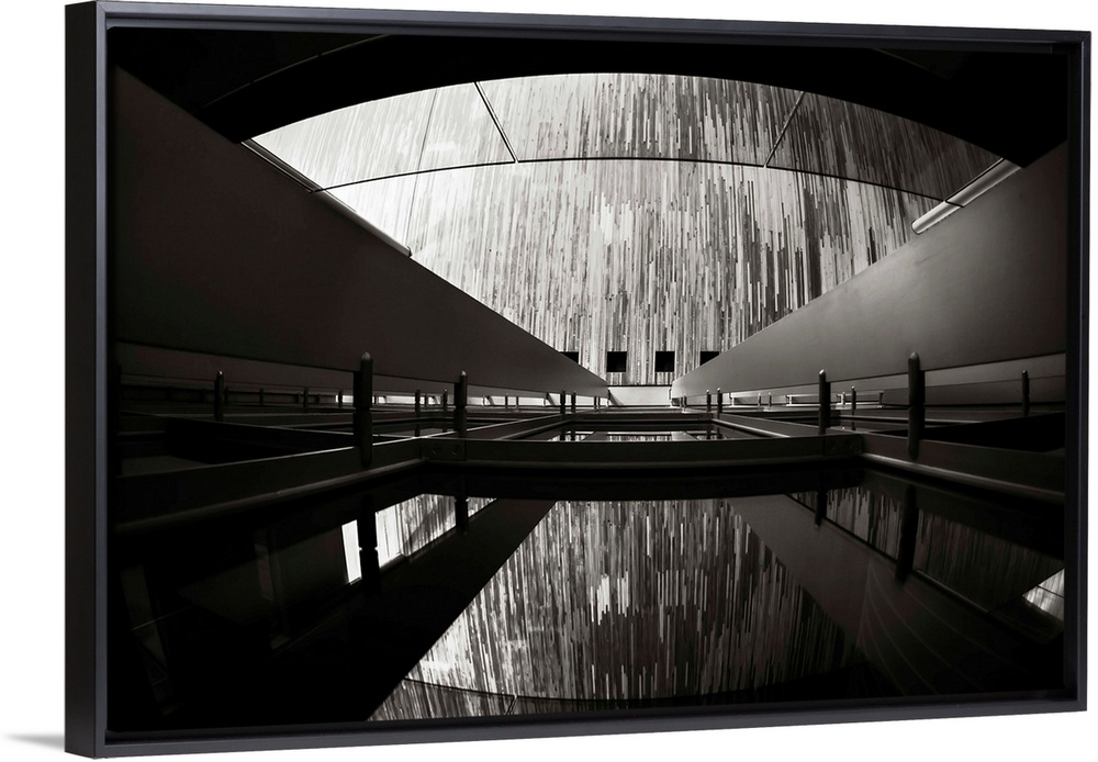 <p>A black and white photograph of an architectural structure.</p>