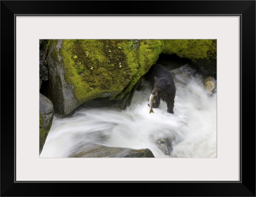 <p>Overhead View Of A Black Bear Catching A Pink Salmon In Anan Creek In Southeast Alaska</p>