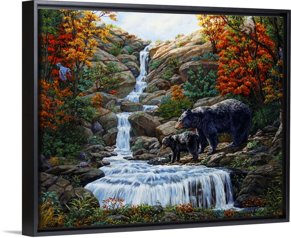 Art Contemporary Art Wildlife Crista Forest Landscapes Waterfall Painting Wildlife Bear Black Bear