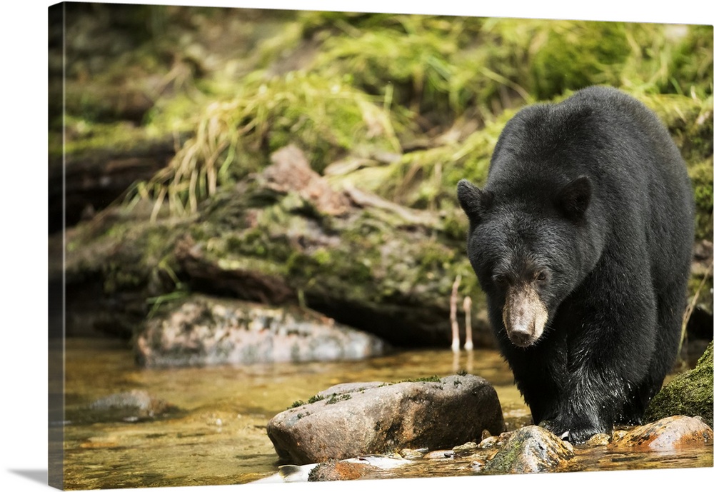 <p>Black bear (Ursus americanus) fishing in the Great Bear Rainforest; Hartley Bay, British Columbia, Canada</p>