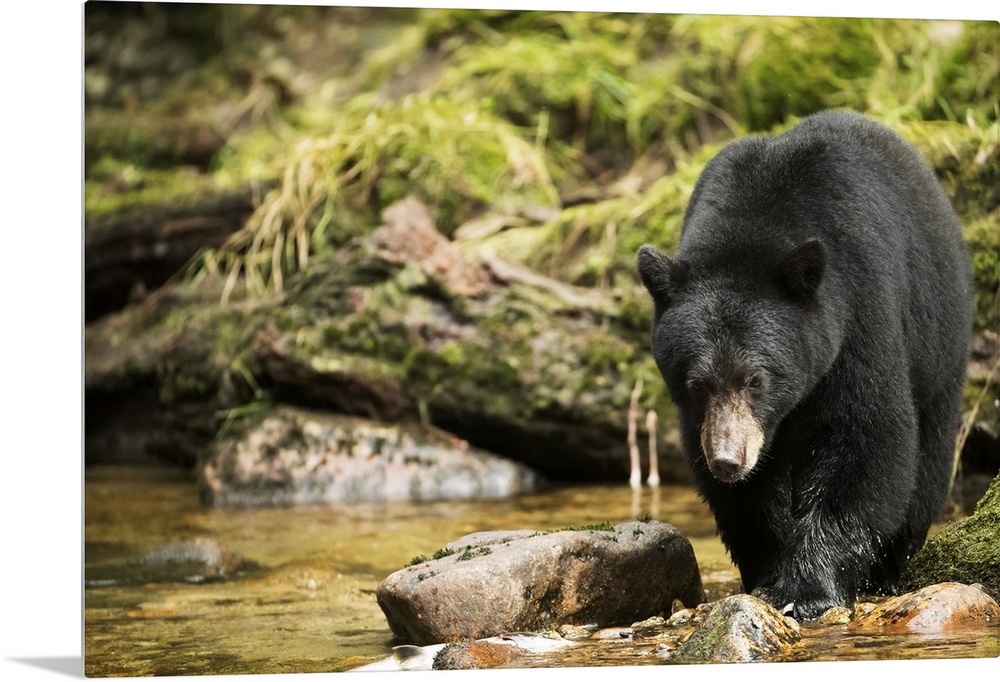 <p>Black bear (Ursus americanus) fishing in the Great Bear Rainforest; Hartley Bay, British Columbia, Canada</p>