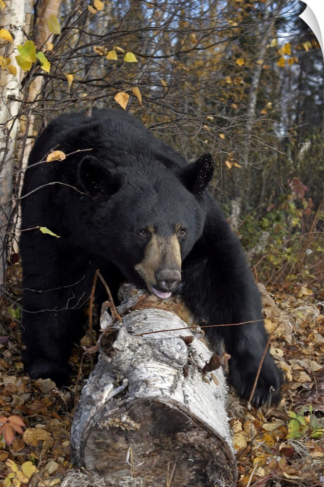 <p>Black Bear Stepping Over Log In Forest Southcentral Alaska Autumn</p>