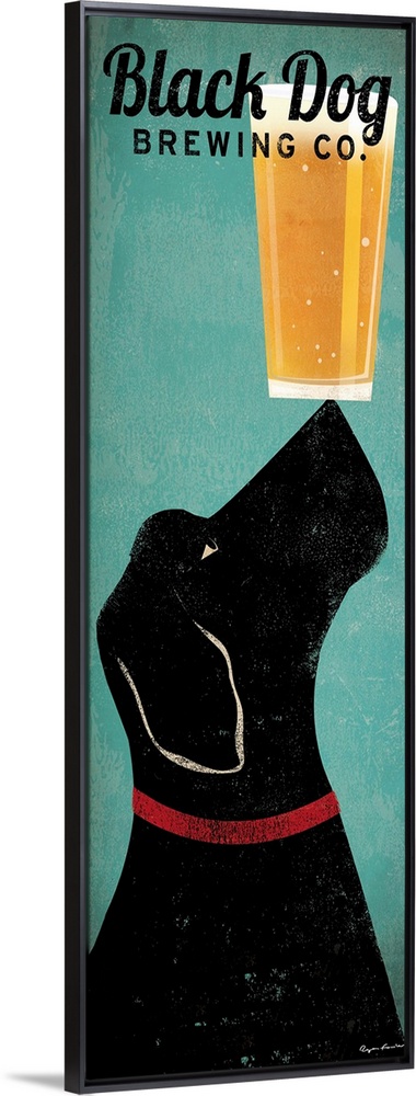 <p>Panoramic advertising art includes a Labrador balancing a pint of beer on its snout. Text for the beer company can be seen at the very top of this piece.</p>