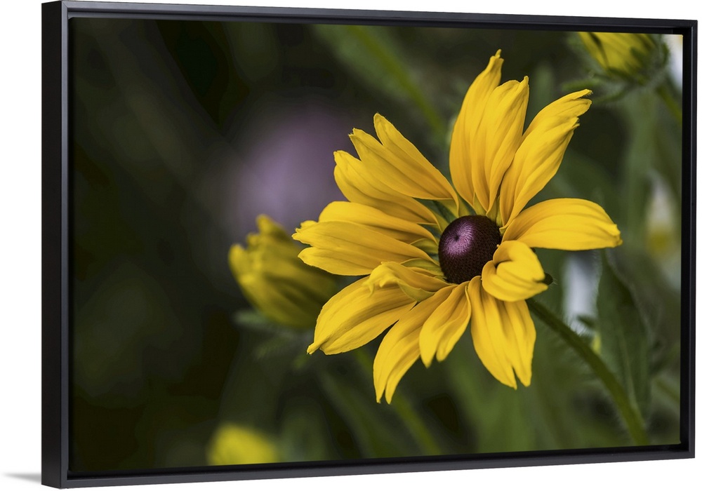 <p>Black-eyed Susan (rudbeckia hirta) blooms in a flower garden, Astoria, Oregon, united states of America.</p>