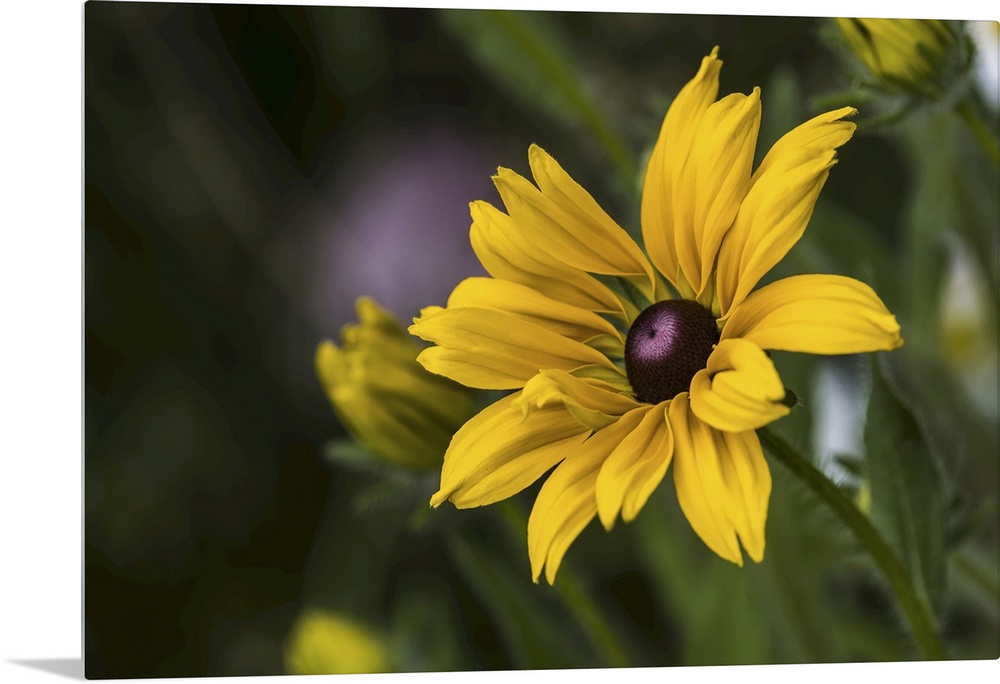 <p>Black-eyed Susan (rudbeckia hirta) blooms in a flower garden, Astoria, Oregon, united states of America.</p>