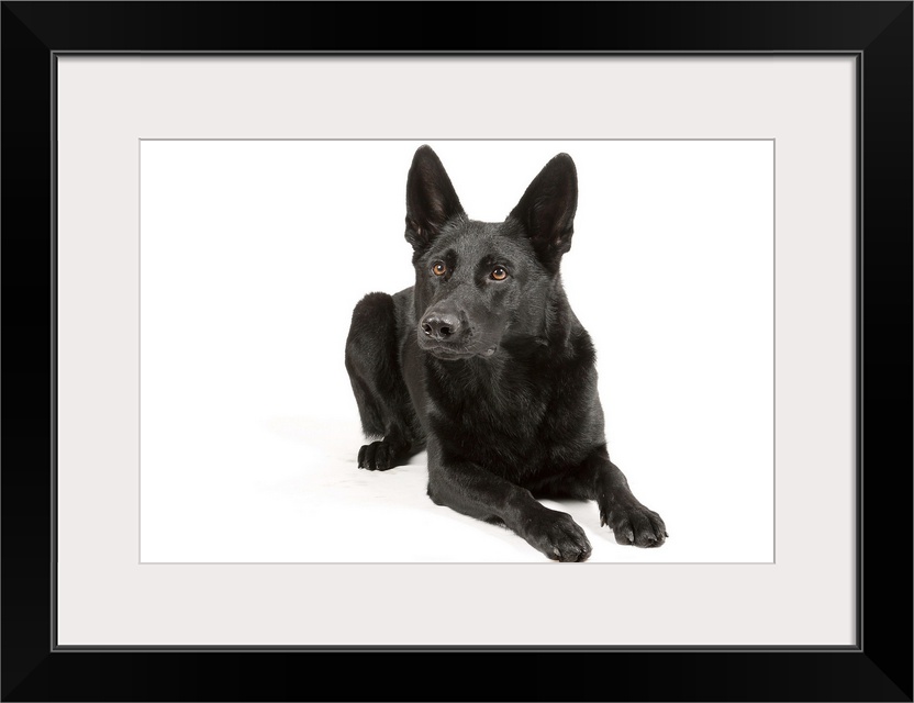 <p>Black German ShepherdLying on white paper.Stockphoto.</p>