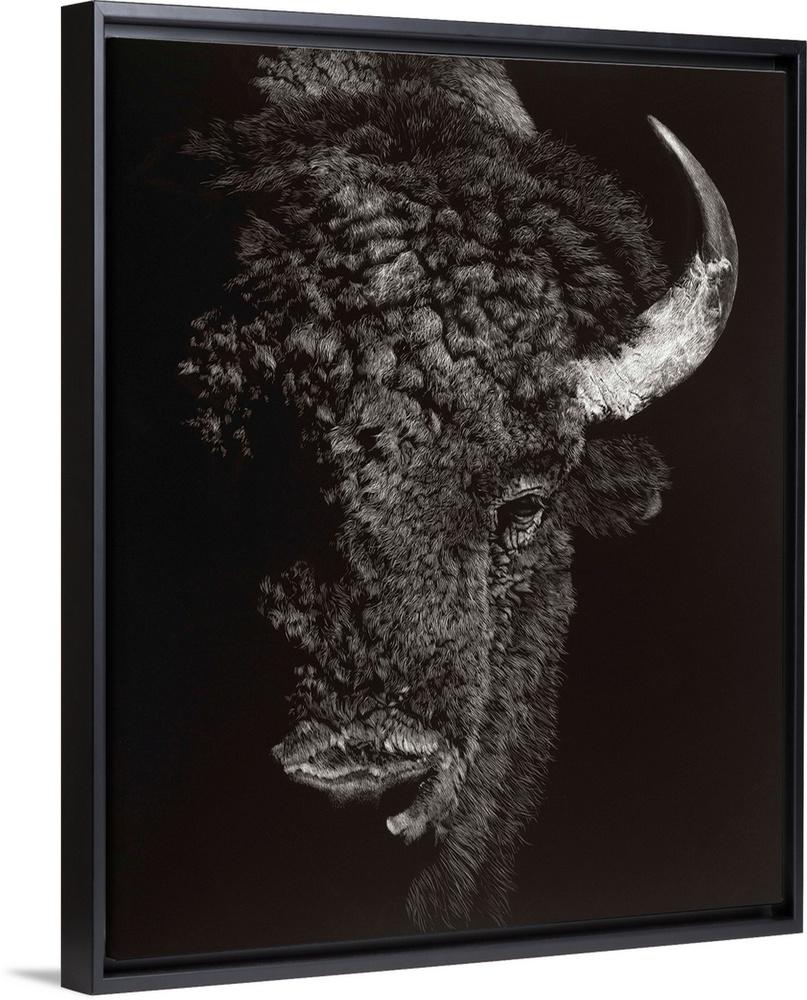 Art Rustic Black and White Wall Art Julie Chapman Contemporary Art Drawing Wildlife Bison and Buffalo