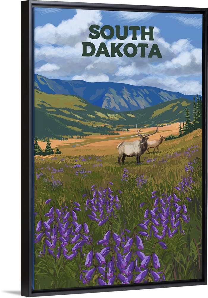 Art Mountains Lantern Press United States South Dakota Wildlife Moose and Elk