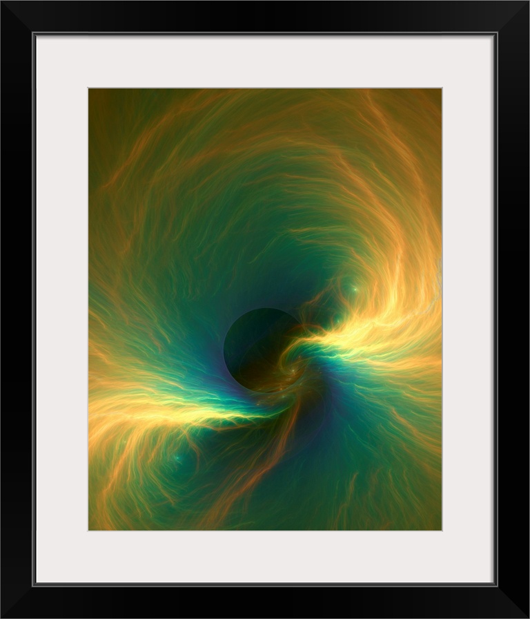 <p>Conceptual fractal illustration of material falling into a black hole, an object of extreme density, with such strong gravitational attraction that even light cannot escape from their grasp if it comes near enough. The theory of general relativity predicts that a sufficiently compact black hole can deform spacetime. Quantum field theory in curved spacetime predicts that event horizons emit Hawking radiation. Hawking radiation is black body radiation that is predicted to be released by black holes, due to quantum effects near the event horizon. In general relativity, an event horizon is a boundary in spacetime beyond which events cannot affect an outside observer. It is defined as \the point of no return\", i.e., the point at which the gravitational pull becomes so great as to make escape impossible. Albert Einstein first predicted black holes in 1916 with his general theory of relativity.</p>