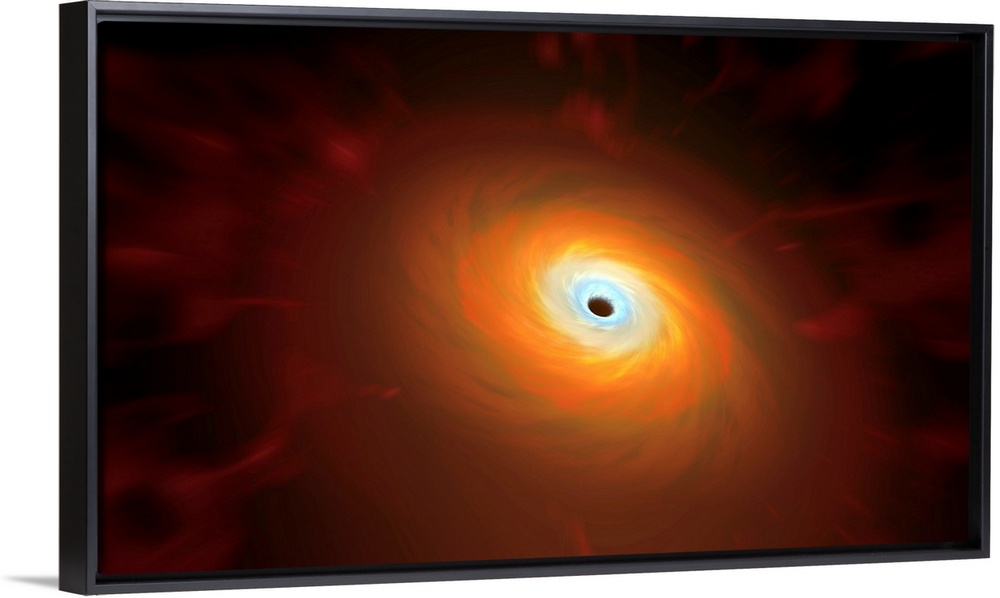<p>Black hole, illustration. A black hole is an object (usually a collapsed star) so compact that nothing can escape its gravitational pull. Not even light. On Earth an object needs to be launched with a speed of 11 kilometres per second if it is to escape the planet's gravity and go into orbit. But the escape velocity of a black hole exceeds the speed of light. Since nothing can travel faster than this ultimate speed, black holes suck in everything including light, which make them utterly dark and invisible. In this image, we can see a black hole, but only because it is surrounded by a superheated disc of material, an accretion disc. The closer to the hole the material gets, the more and more of its light is captured, which is why the hole grows darker towards its centre.</p>