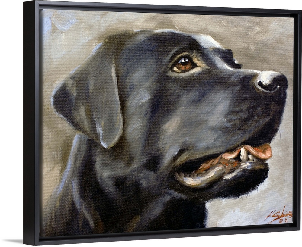 <p>Contemporary painting of a black Labrador retriever.</p>