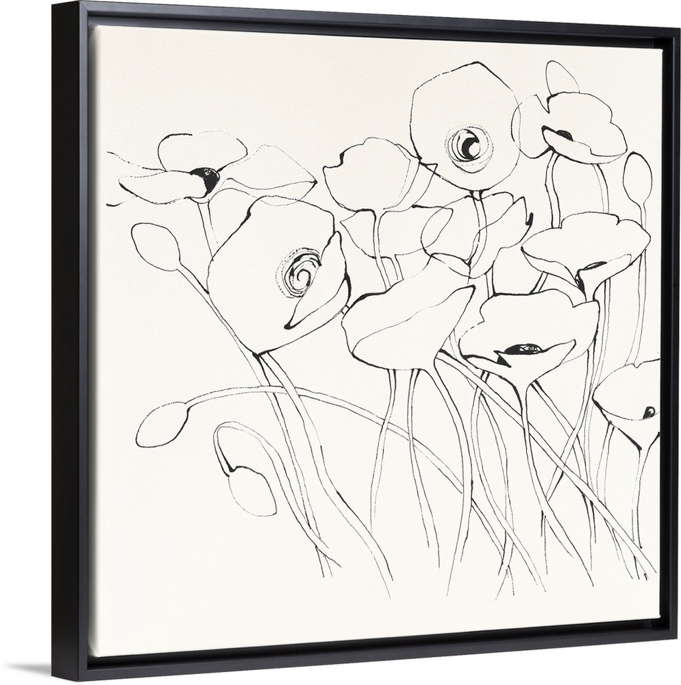 <p>Contemporary illustrative artwork of outlined flowers against a cream toned background.</p>