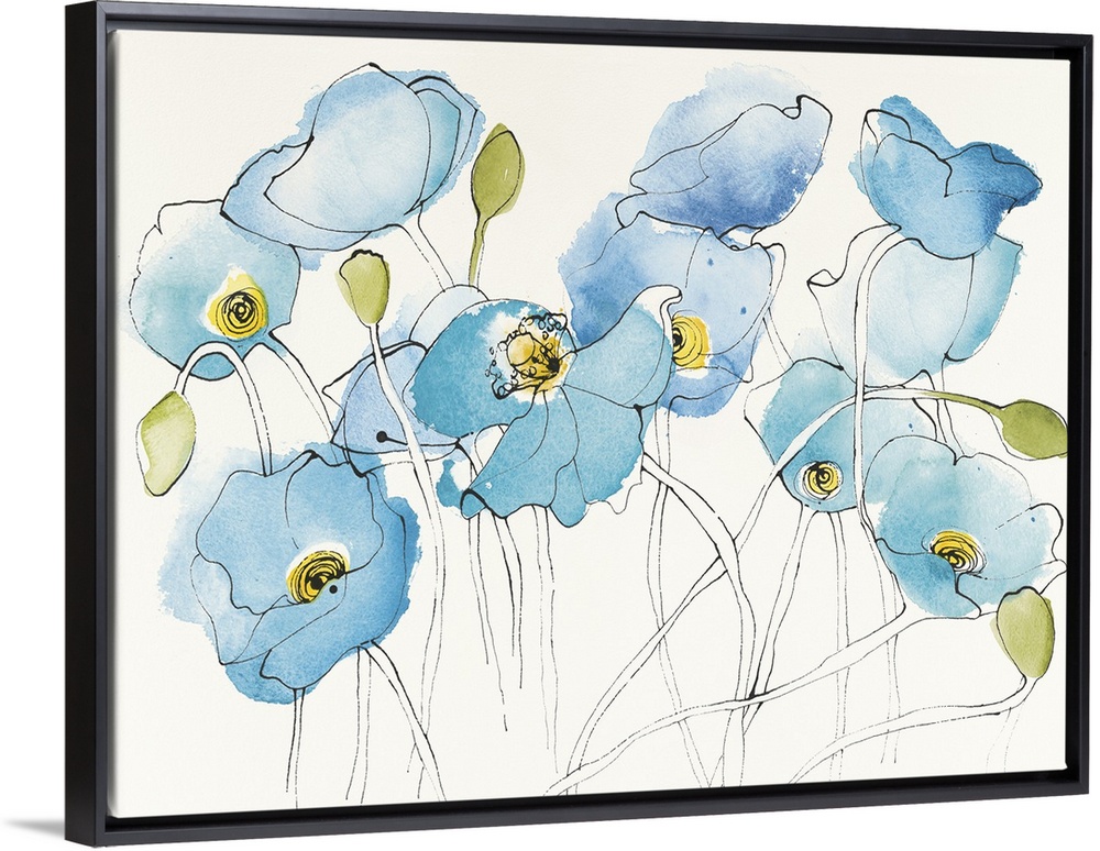 Art Transitional Blue Flowers Blue Wall Art Contemporary Art Plants and Flowers Florals Poppy Shirley Novak Painting Watercolor