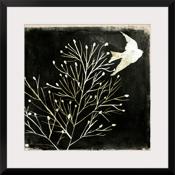 Art Black and White Wall Art Decorative Art Florals Leaves Graphic Art Melissa Wang Wildlife Bird