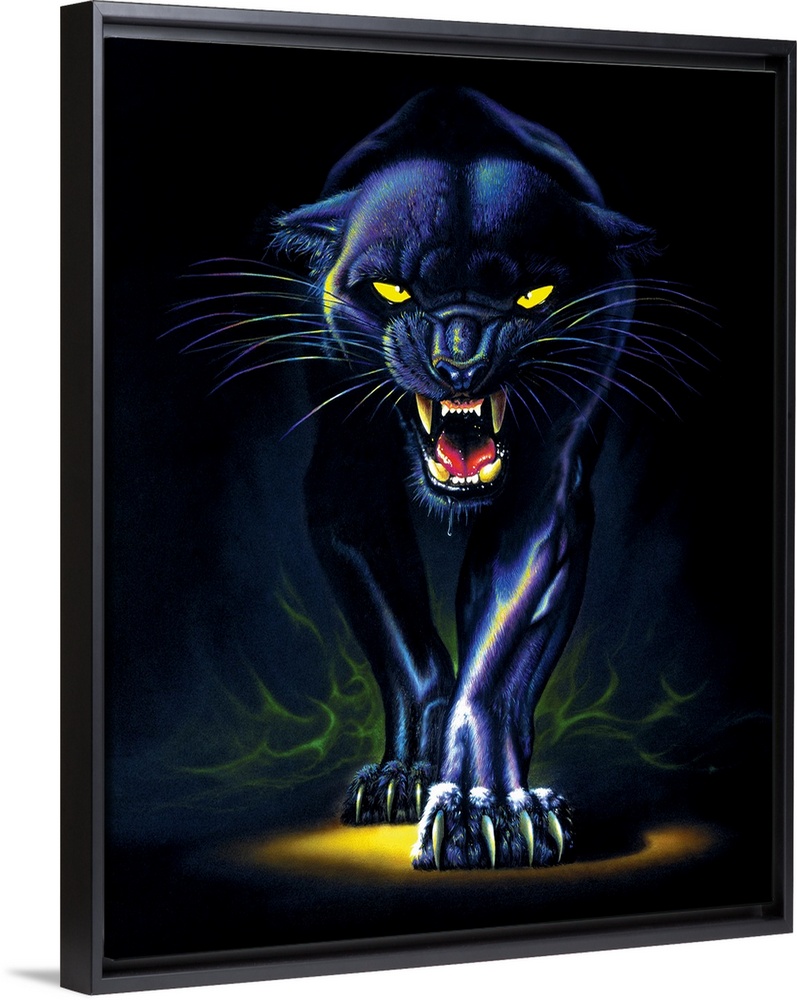 <p>This fantasy style artwork shows a panther as it snarls and creeps toward the front of the painting.</p>