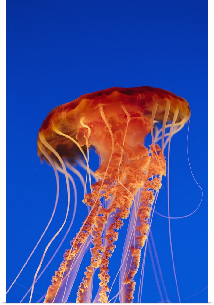 <p>Black sea nettle jellyfish underwater, in the Monterey Bay Aquarium.</p>