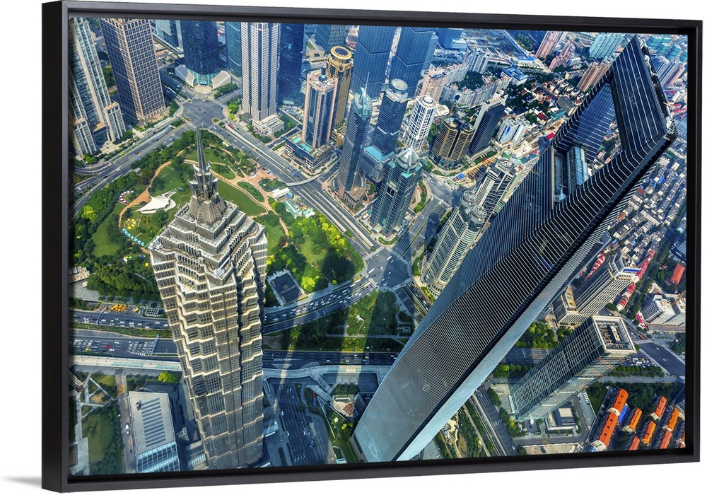 <p>Looking Down on Black Shanghai World Financial Center SkyscraperJin Mao Tower Cityscape Liujiashui Financial District Shanghai China.</p>